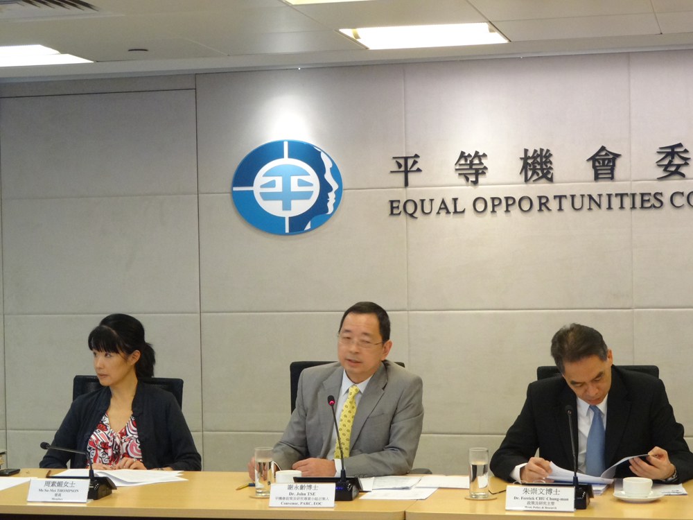 圖:平機會政策及研究專責小組召集人謝永齡(中)表示,懼怕丟失工作為外傭不敢聲張的主要原因 本報記者劉毅攝