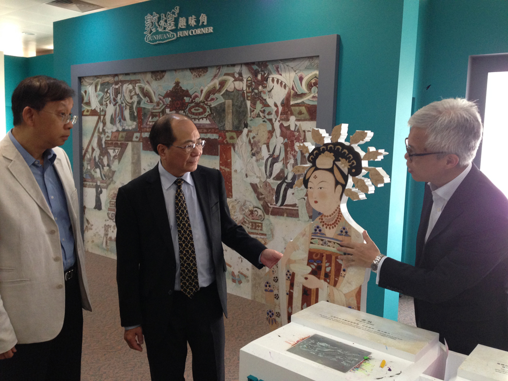 位於甘肅的敦煌石窟,保存了精美絕倫的佛教藝術遺跡,內容豐富的文化資料,被譽為「中世紀的百科全書」和「牆上的圖書館」,為宗教、藝術、歷史及民俗等不同範疇留下了珍貴的資料。「敦煌─說不完的故事」昨日首天在香港文化博物館展出,教育局局長吳克儉特意聯同總課程發展主任(個人、社會及人文教育)李志雄實地了解詳情,並與康樂及文化事務署官員交流歷史文化教育。