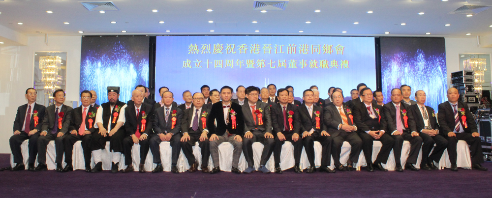 圖:香港晉江前港同鄉會第七屆董事就職,施新平等賓主合照