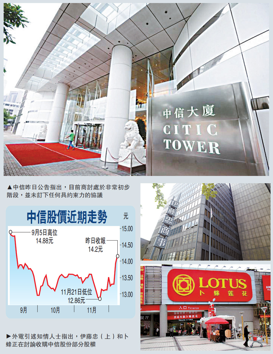 圖:中信昨日公告指出,目前商討處於非常初步階段,並未訂下任何具約束力的協議