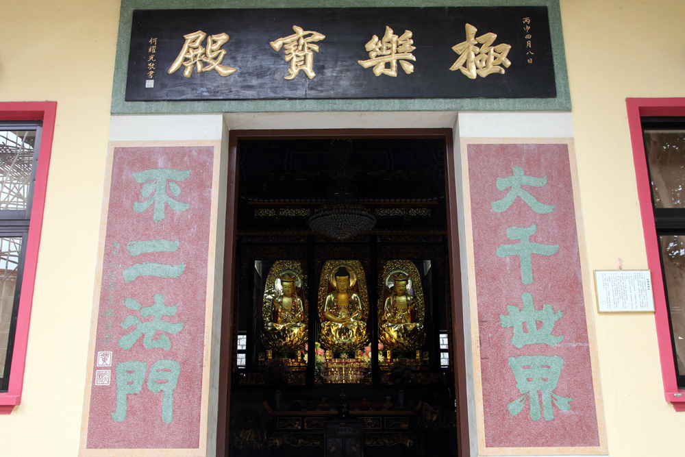 圖:荃灣東林念佛堂的極樂寶殿供奉西方三聖