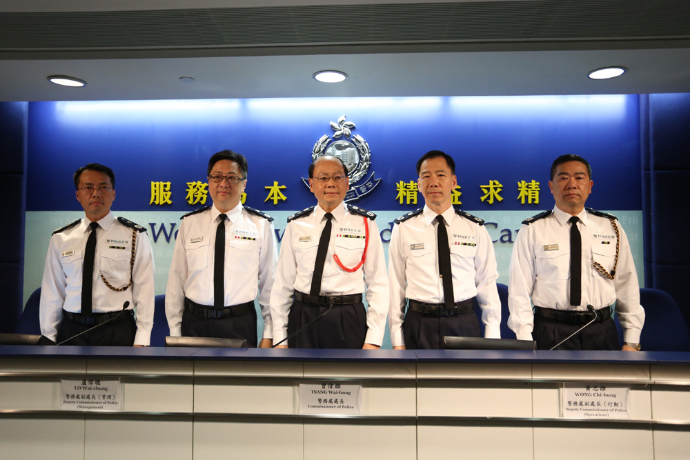 圖左起:行動處處長劉業成、副處長(管理)盧偉聰、處長曾偉雄、副處長(行動)黃志雄、助理處長(行動)張德強/本報記者何嘉駿攝