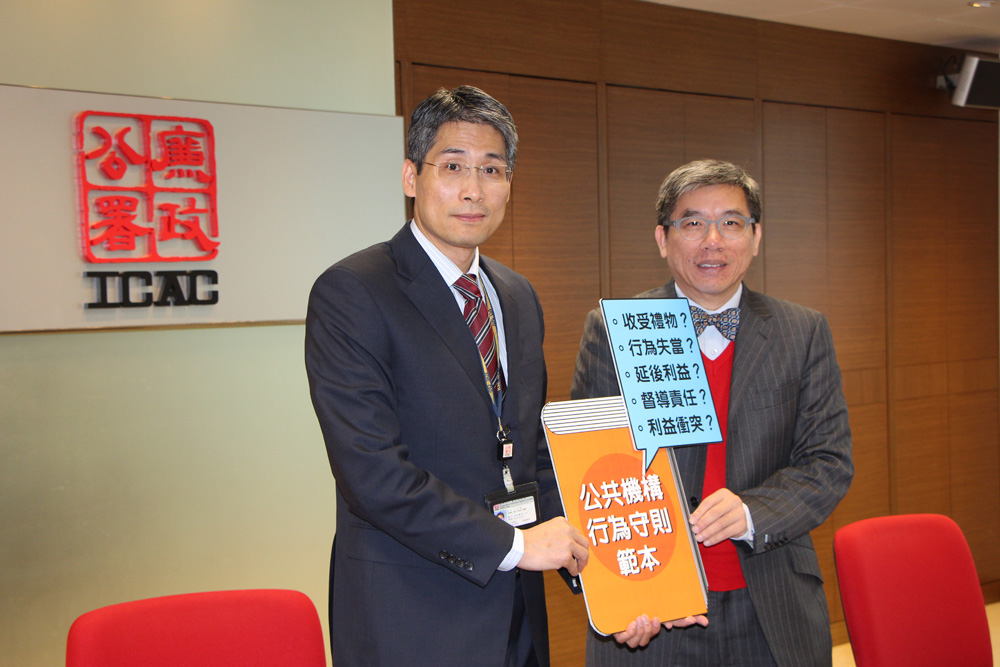 廉政公署繼2000年後再次檢討《公營機構成員行為守則範本》,更新向公共機構建議防止屬下公職人員貪污的守則,對象為本港113間《防止賄賂條例》列明的公營機構,包括交通、能源等公共事業,房委會、證監會等監管機構或諮詢架構,以至大學等學術機構。篇幅25頁的守則範本訂明,機構嚴禁成員向任何與機構有業務往來的人或公司,例如服務對象、供應商或承辦商,索取或接受任何利益。