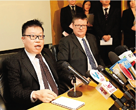 圖:德勤黎嘉恩(左)昨午出席亞視特別股東大會。右為德勤企業重組服務主管何熹達 本報記者林少權攝