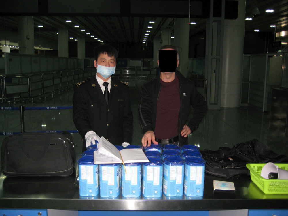 12月24日晚上八時左右,一名50歲左右、拿?一個大購物袋、背?一個背囊的外籍旅客引起關員注意。關員示意該外籍旅客接受檢查,旅客極不情願地步入行李檢查區域。經檢查後發現,該外籍旅客的行李中塞滿Nutrilon牌的嬰兒奶粉,共計19罐。然而該外籍旅客卻一口咬定他此次帶入境的19罐奶粉全部是自用,並非替人帶貨。