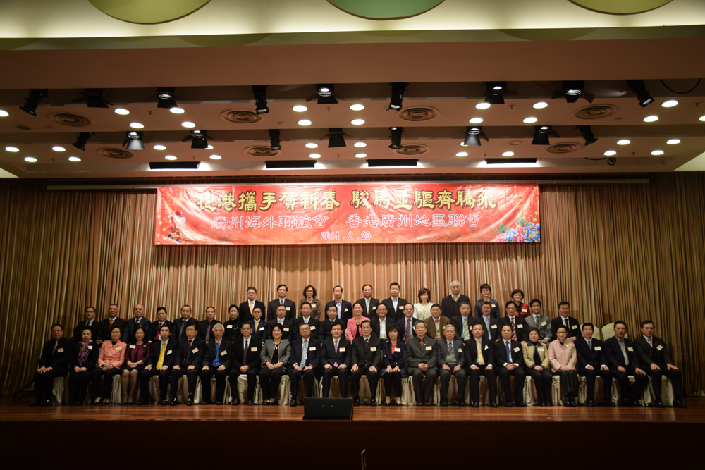 圖:廣州海外聯誼會、香港廣州地區聯會慶新春,賓主合照\本報記者馮玥攝