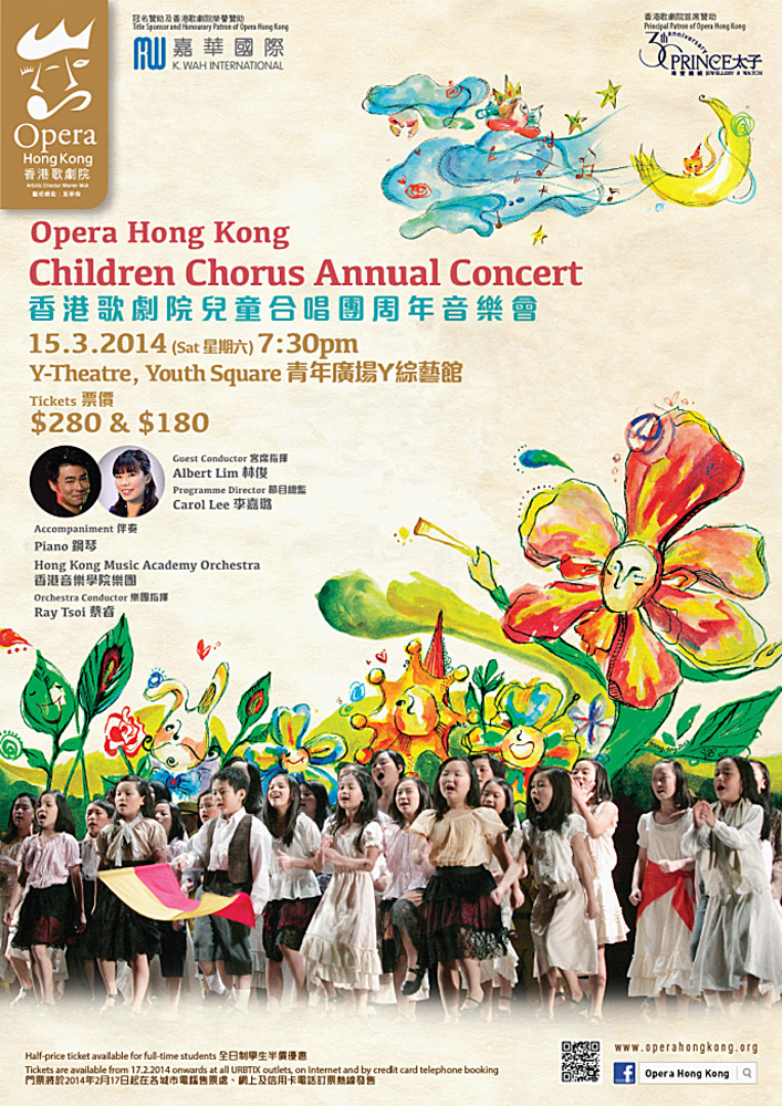 【大公報訊】香港歌劇院兒童合唱團周年音樂會將於三月十五日(星期六)晚上七時三十分在香港柴灣青年廣場Y綜藝館舉行。