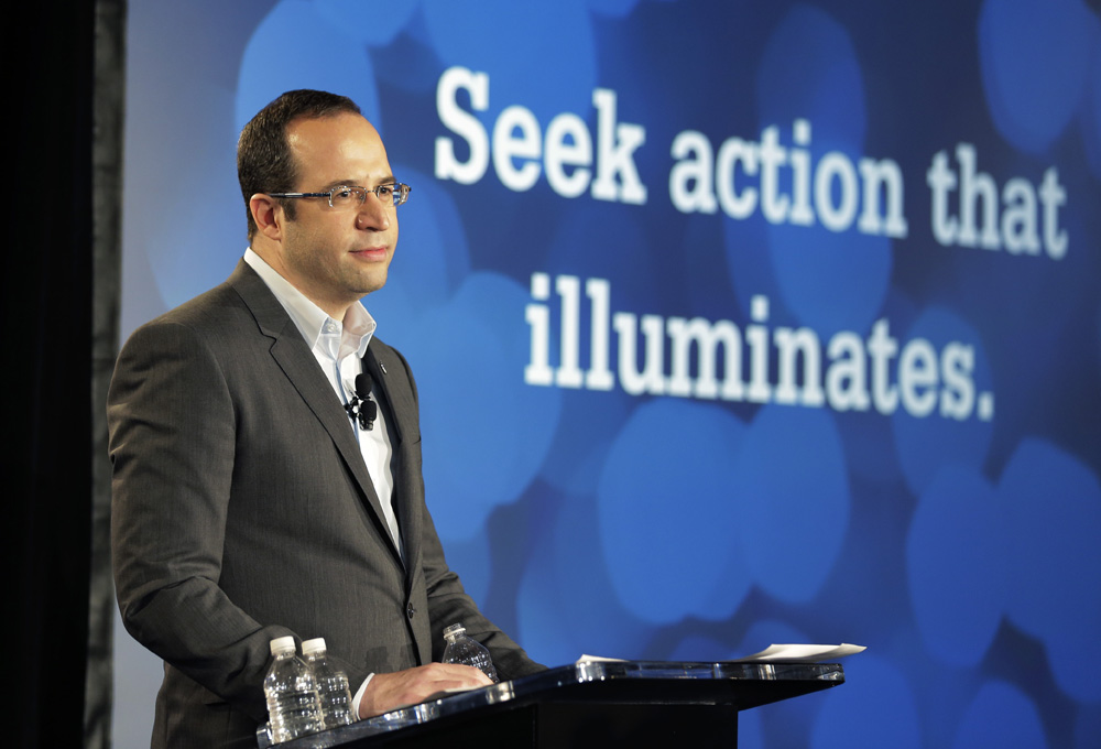 圖:美國大專院校委員會總裁戴維.科爾曼五日在新聞會上宣布SAT改革政策\美聯社