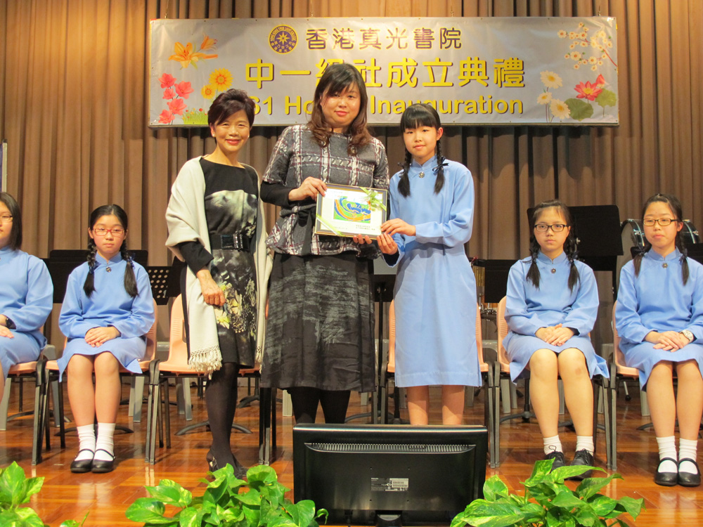 成立級社是真光傳統特色,學校希望藉此把學生團結起來。本年度的級社名為「藝芸社」,社色是藍白色,藍白代表樸實、純潔;而社花是鬱金香,社訓是「敬業樂群」。典禮開始先由中一級主席潘穎芝致辭。潘同學分享了中一同學入讀真光後的校園生活,當中包括學習體驗營、陸運會、旅行日和班際詩歌比賽等,這些活動讓同學們團結起來,加強了同學們的歸屬感。