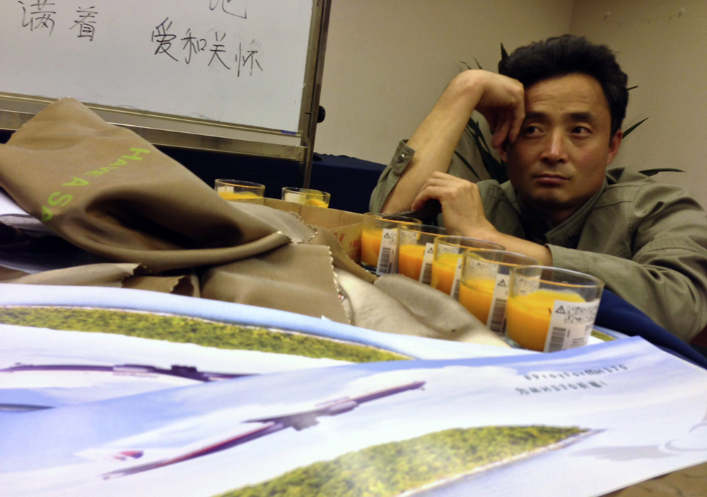 圖:一名馬航中國乘客家屬2日在北京麗都酒店等待消息\路透社