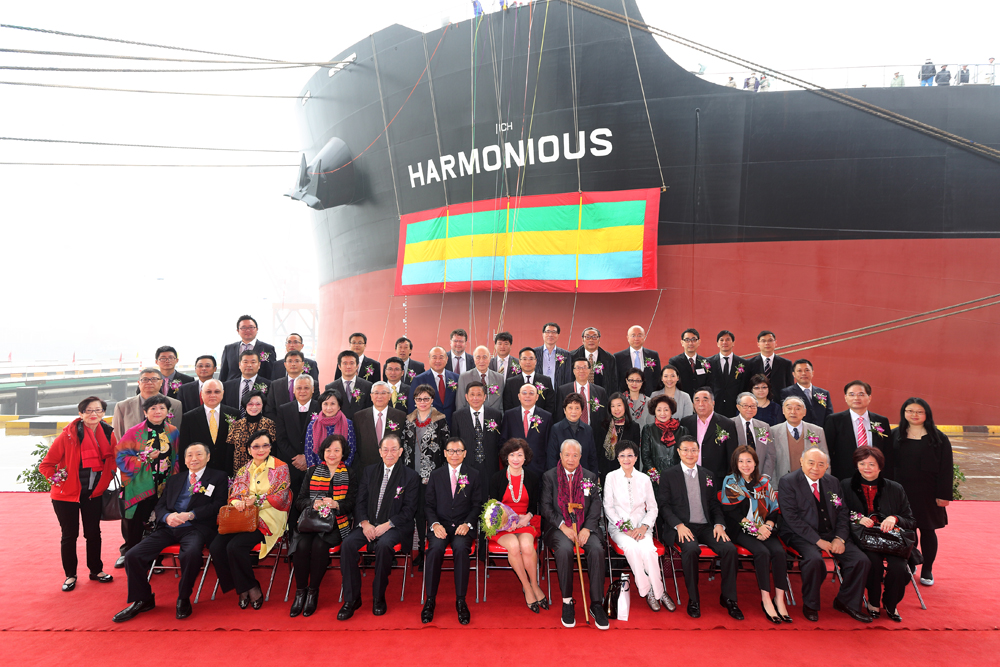 香港德和海運新船「協和」號(Harmonious),日前在上海江南長興造船船廠正式命名並啟航,赴澳洲港口載貨。總經理盧強華介紹,該船是2011年趁低價時向船廠訂造,惟並未透露具體價格。他續說,該船已租給比利時Bocimar船運公司。上圖為「協和」號,在上海江南長興船廠舉行命名禮。