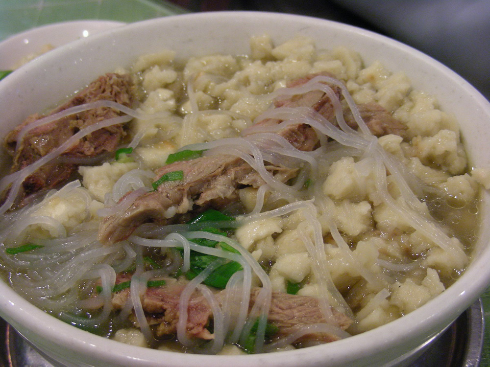 但我,情有獨鍾的卻是幾家名店一樓普座和許多小店經營的大碗羊肉泡饃。我覺得,吃這樣的羊肉泡饃,並且是什麼涼盤、熱菜都不要,心無旁騖地把一大碗羊肉泡饃掃蕩一空,才算正宗、才能過癮。一次,有人請我在「老孫家」樓上包間吃泡饃宴,恰與當時的馬明陽總經理相遇。他問我:「質量咋樣?」我說「不錯不錯」,但緊接?就強調道:「不過我最關心的是咱一樓普座泡饃的質量,那兒才是我常去享受的地方。」馬總經理回答:「樓上樓下的質量都要創一流!」這話我愛聽。因為,羊肉泡饃本來就是一種大眾飯食,在開發泡饃宴、提升品位和附加值的同時,永遠不忘大眾,優質服務大眾,這才是寄託?西安人的鄉情,並且已經成為西安重要文化符號的羊肉泡饃的立身之本,也才是「老孫家」、「同盛祥」、「天錫樓」這樣的清真名店的健康發展之道!