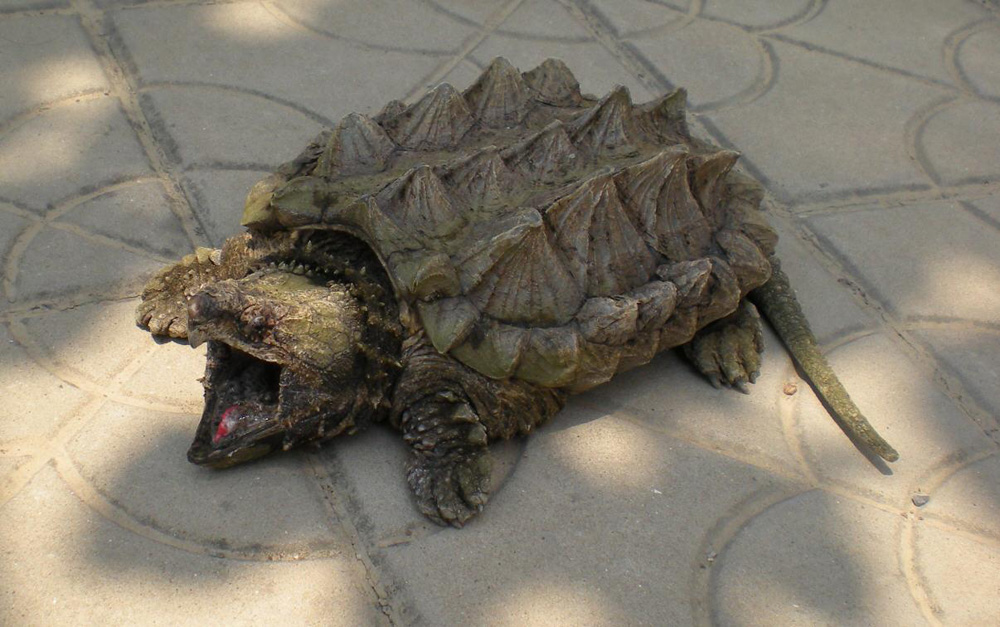 鱷龜學名Macrochelystemminckii,是世界最大淡水龜之一,主要產自北美洲及美國南部水域,有平背及「棱角」尖背兩種,牙齒銳利,屬於具攻擊性食肉龜。鱷龜口顎肌肉發達,噬咬力度可達200磅,足以咬斷人的手指,2011年5月28日,上水天平?一名姓盧(22歲)女子,右手食指意外被寵物鱷龜緊咬達10分鐘,痛入心脾,血流如注入院救治。