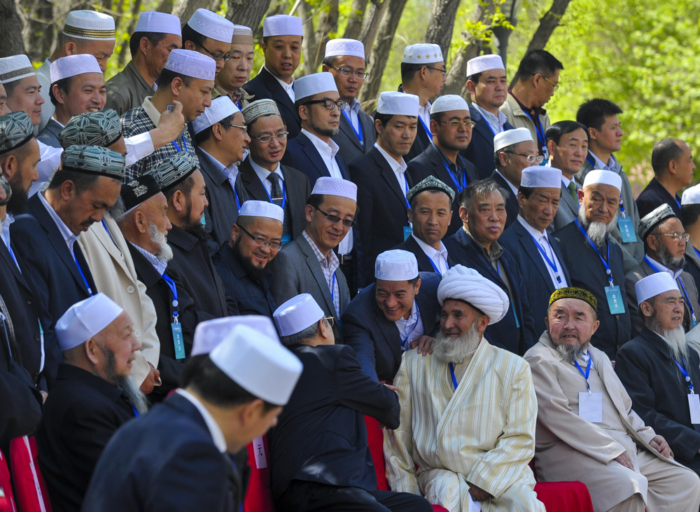 圖:5月14日至15日,由中國伊斯蘭教協會首次主辦的「伊斯蘭教中道思想研討會」在烏魯木齊舉行。逾百名來自中國各地的伊斯蘭教知名人士和著名學者齊聚此間,探討伊斯蘭教中道思想,並號召中國穆斯林民眾「堅守中道思想,遠離極端思想」/中新社
