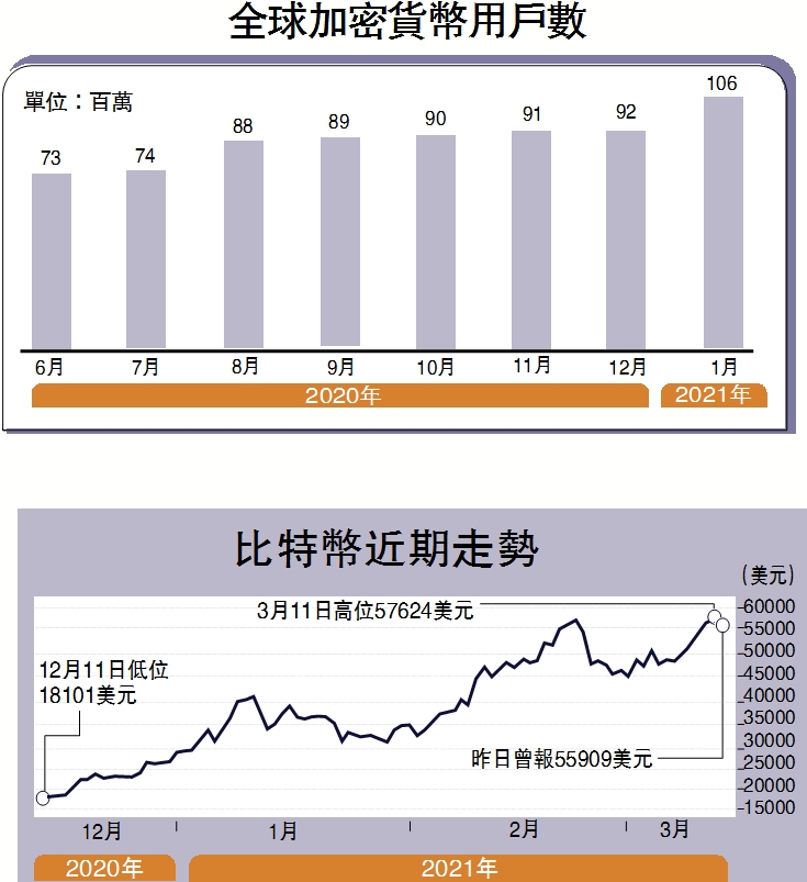 筆者認為,本輪比特幣上漲有深層次的原因。美國《商業內幕》雜誌報道稱,全球有1.06億加密貨幣用戶,其中有1400多萬人,是1月份新增的。不久前,摩根大通宣布「我們必須參與比特幣」,其首席執行官傑米.戴蒙幾年前還曾經說過,將炒掉任何一位涉足比特幣的交易員,因為「他太蠢了」。摩根大通對於比特幣的態度一百八十度轉彎,最重要原因就是這些新增的加密貨幣用戶,有相當一部分也是摩根大通的目標客戶。