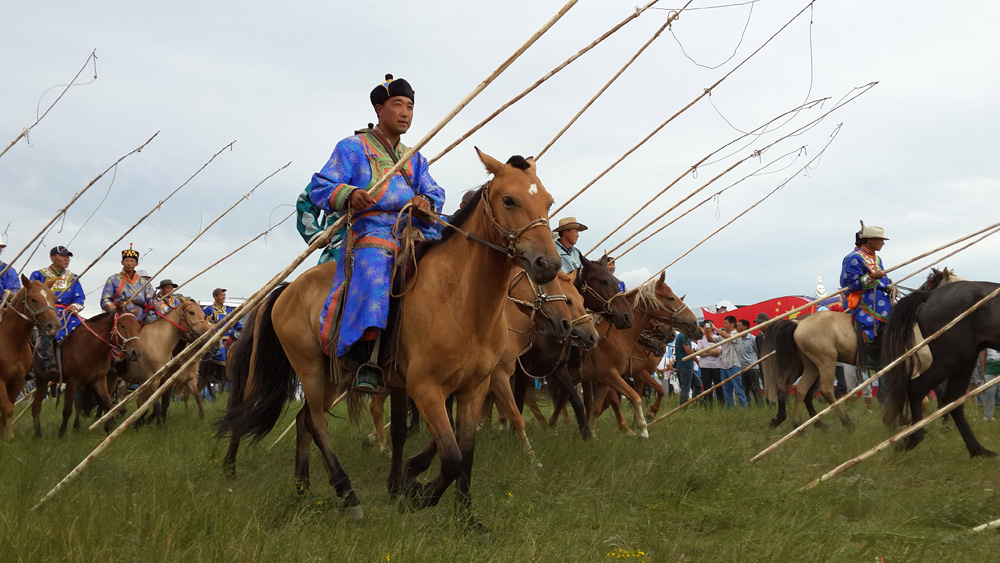 7月21日,來自赤峰市巴林右旗的蒙古族牧民騎手在第23屆那達慕大會開幕式上出場。當日,內蒙古赤峰市巴林右旗第23屆那達慕大會在巴林草原開幕。 新華社