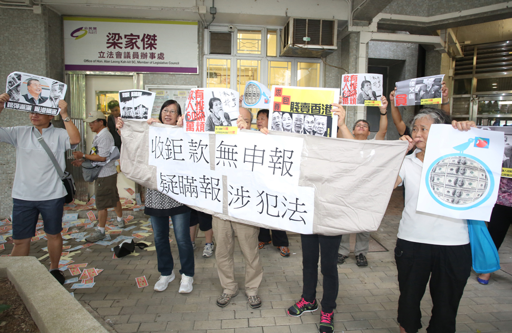 圖:一批市民昨到梁家傑位於藍田的辦事處外示威,斥他身為大律師卻知法犯法 本報記者麥潤田攝