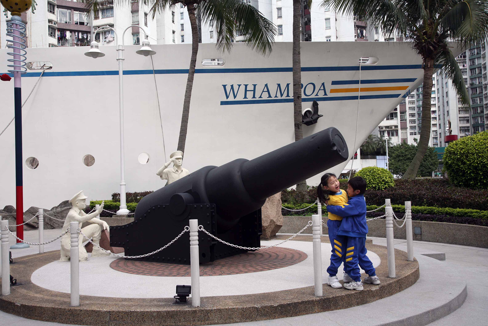 九龍船塢為港府船政廳造船,猶如御用造船師。鑑於港島的海軍船塢不敷應用,駐港英軍與九龍船塢商討興建可容巨型軍艦的軍塢,並給予資助,一八八二年投入服務,規模進一步擴大。英國皇家海軍一艘戰艦在該處維修時,曾留下一支古炮,船塢關閉後興建黃埔花園時被發現,及後根據英國格林威治海軍博物館的圖樣翻製炮架,現擺放在船形商場外展出。