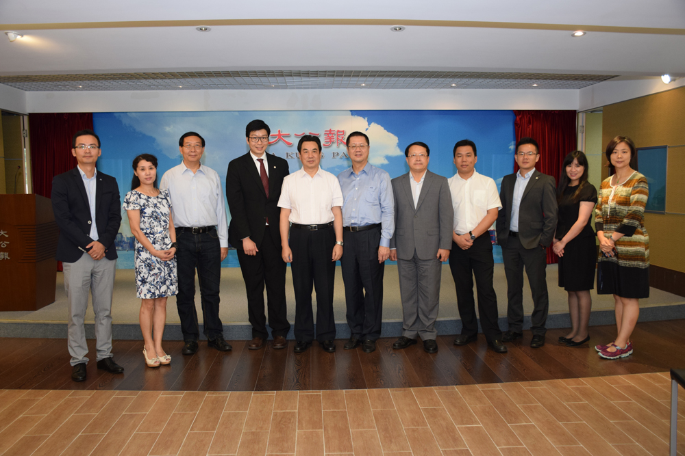 圖:大公報總經理盛一平(左五)、副社長兼執行總編輯李大宏(右五)與助理總經理田志偉(左三)熱烈歡迎萊蒙國際集團有限公司董事長黃俊康(左六)率團到訪大公報