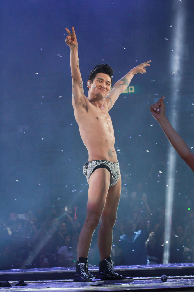 在安哥環節裡,Alex身穿灰藍色西裝唱《脫掉》,女舞蹈員則以比堅尼登場,相當性感。期間Alex將上衣除掉露出結實腹肌,之後更突然將褲都脫了,只剩下銀色閃爆三角褲,令全場嘩然,演唱會亦在十一時二十分結束。