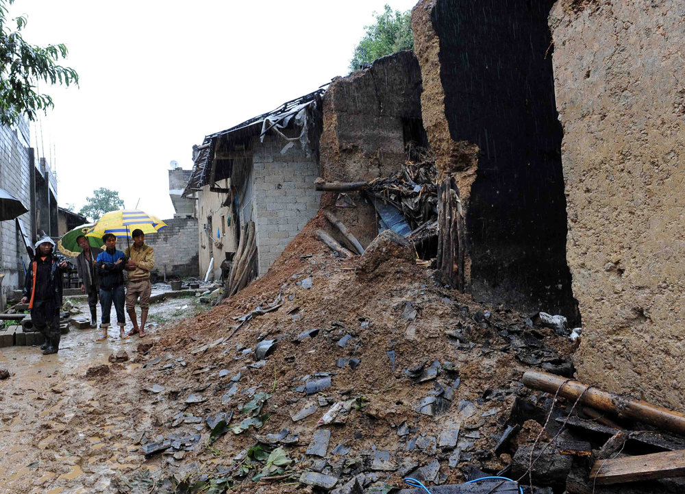 圖:17日,永善縣務基鎮波車七組土坯房垮塌嚴重 新華社