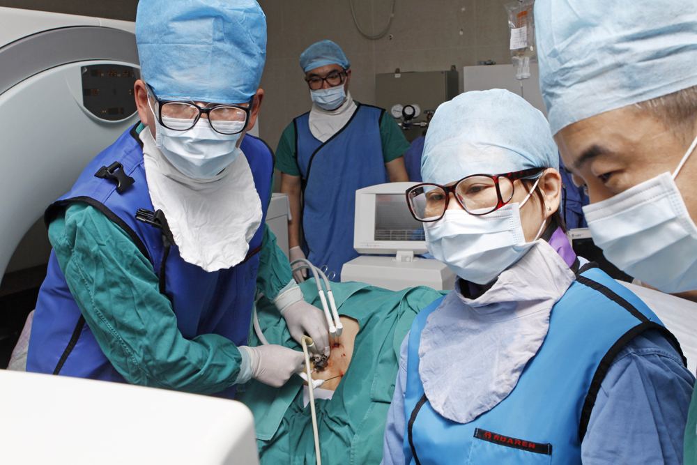 圖:廣州復大腫瘤醫院院長牛立志在為癌症病人實施冷凍治療手術 大公報記者 官文清攝