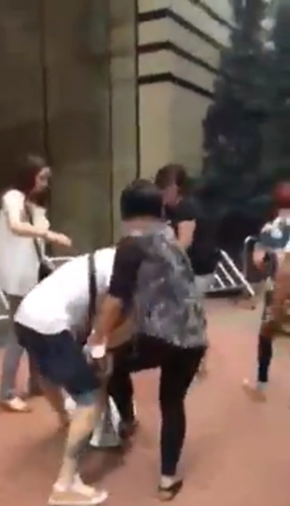 圖:長沙灣內地團打架現場,團友扭作一團 網上截圖