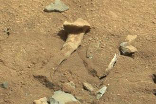 日前NASA在一份聲明中說,這張照片是「好奇」號拍攝的,那塊看似的大腿骨實際上只是塊石頭,估計是被風或水流侵蝕成如今的模樣。
