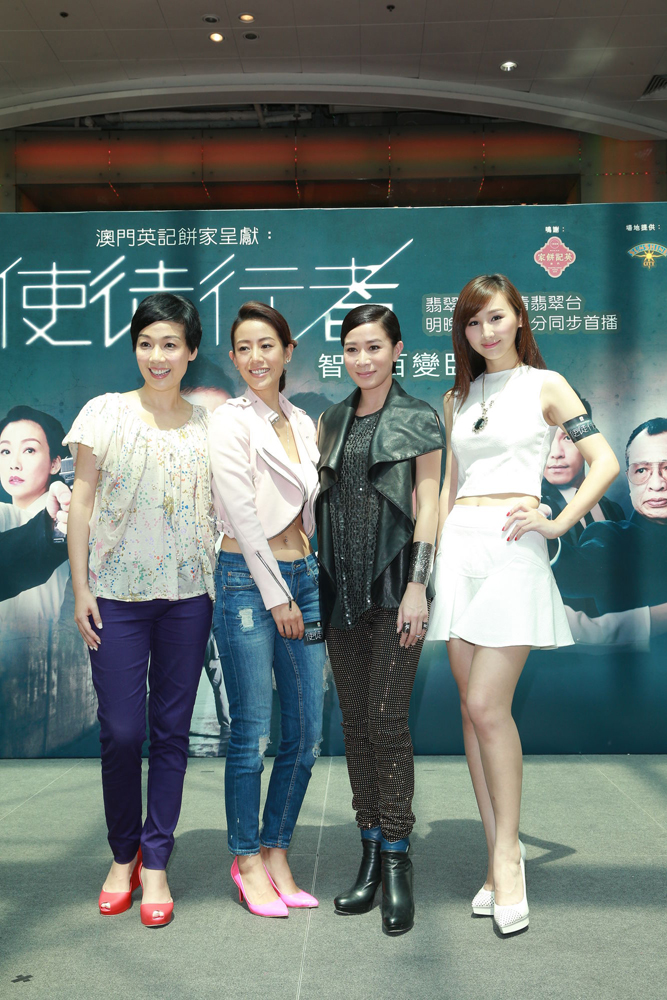 圖:江美儀(左起)、Toby、阿佘和高海寧一起出席為新劇宣傳