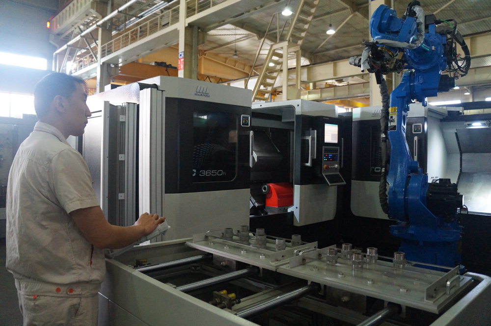 圖:瀋陽機床工人正在操作數控機床加工單元 羅丹攝