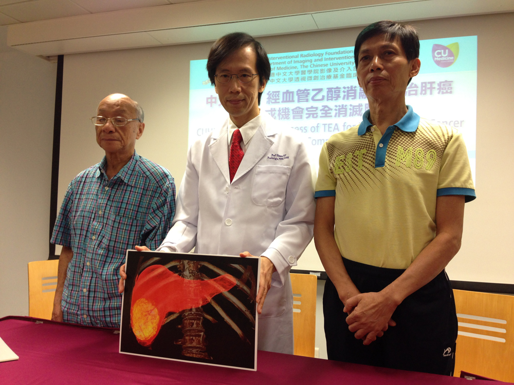 過去30年,醫學界一直用傳統的「經血管碘栓塞化療」治療中期肝癌,將碘油、化療藥混合物打入腫瘤血管,但此方法不能完全阻塞血管,藥物會流走,令療效打折扣。中大醫學院影像及介入放射學系教授余俊豪自2001年起研究「經血管乙醇消融術」,將碘油、乙醇以2:1比例混合,通過微導管注入肝動脈、門靜脈,酒精破壞力強,通過血管時會破壞細胞蛋白,將腫瘤周圍路徑全部堵死,從而令酒精長時間停留在腫瘤中,殺死癌細胞。