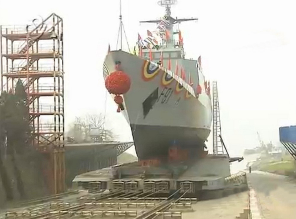 圖:F91艦於1月27日下水 電視截圖