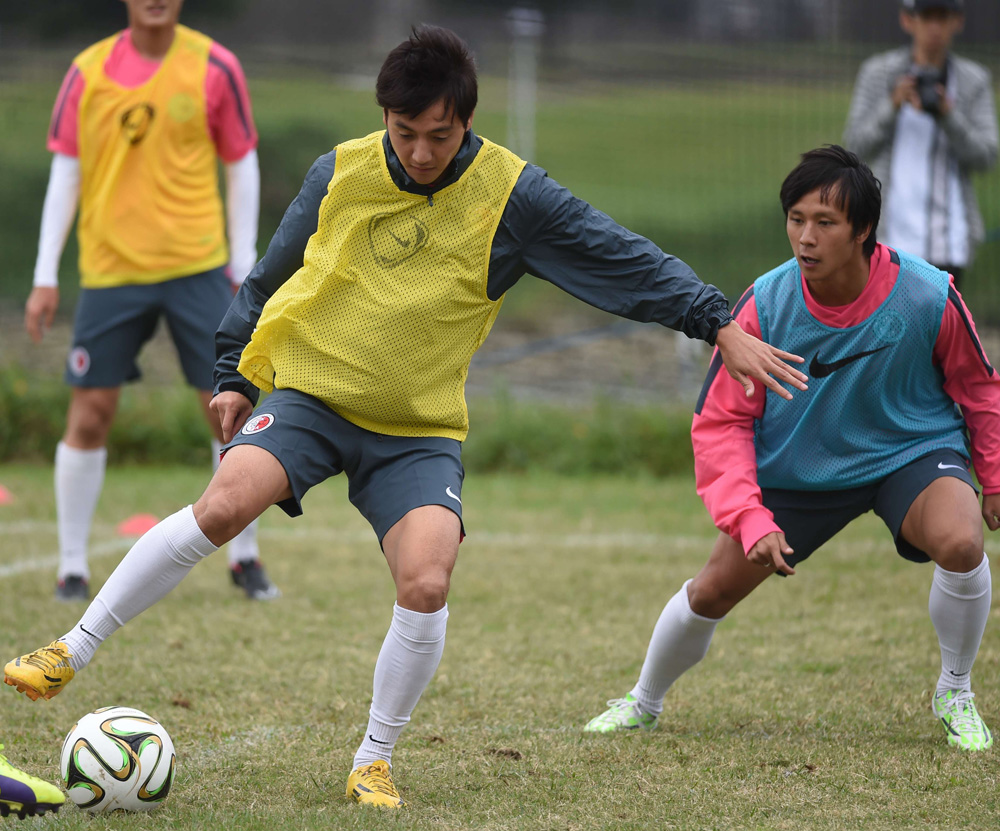 圖:港足盧均宜(右)未來兩場都有上陣機會 本報攝