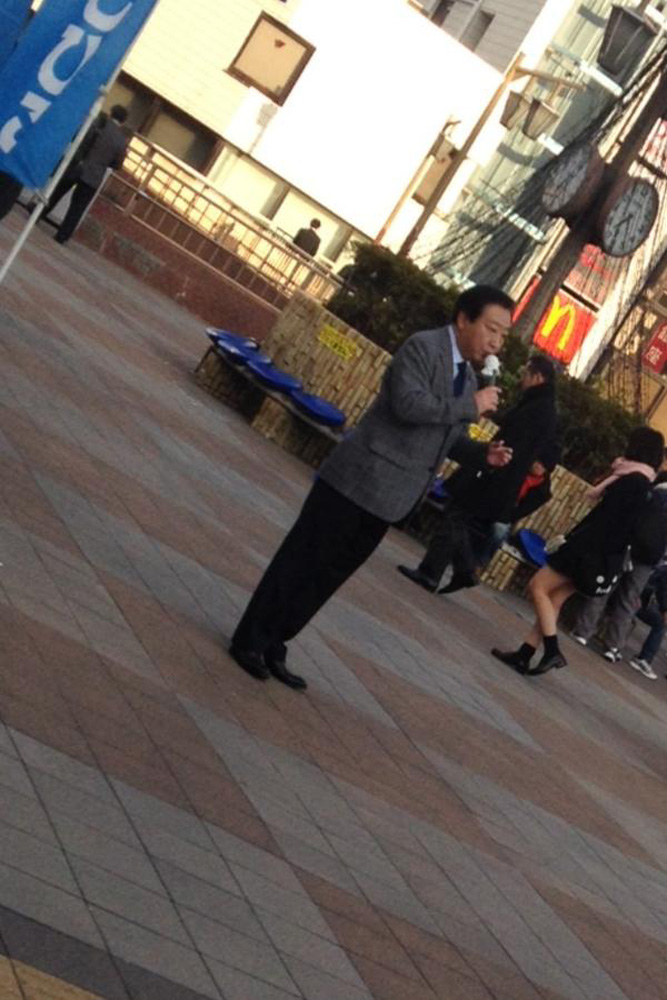 圖:日本前首相野田佳彥在津田沼站演講,無人駐足聆聽 互聯網