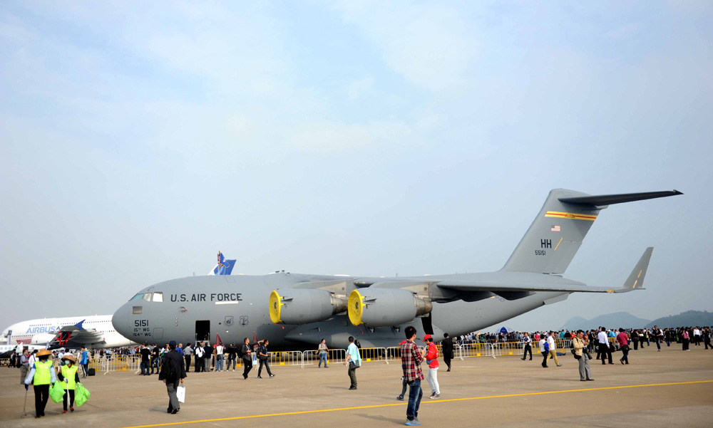圖:美國C17運輸機11月在珠海航展作靜態展示