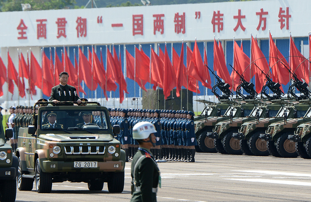 中共中央總書記、國家主席、中央軍委主席習近平昨日上午視察並檢閱了中國人民解放軍駐香港部隊,三千一百六十六名受閱官兵軍容嚴整,組成二十個方隊接受檢閱。習近平代表黨中央和中央軍委向駐香港部隊全體指戰員致以誠摯的問候。他強調,要以黨在新形勢下的強軍目標為引領,在新的起點上全面加強駐香港部隊工作,堅決貫徹「一國兩制」方針和香港特別行政區基本法、駐軍法,堅決維護國家主權、安全、發展利益,堅決維護香港繁榮穩定。