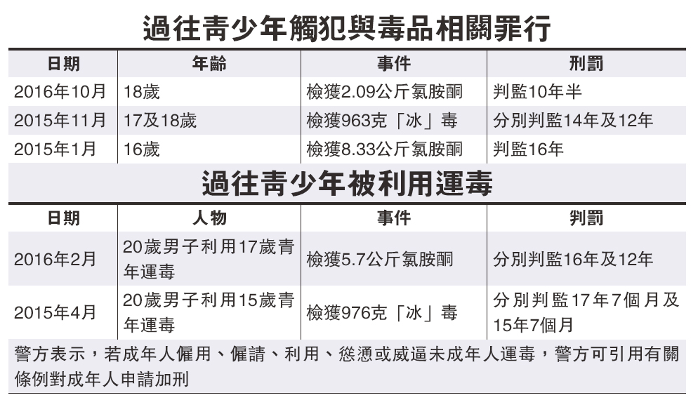 警方表明,跨境販毒屬嚴重罪行,一經定罪最高罰款500萬元及終身監禁。案件如涉及招攬未成年人士販毒,警方會引用《危險藥物條例》第56A條向法庭申請對該人加重刑罰。未成年亦不可以成為減刑理由。