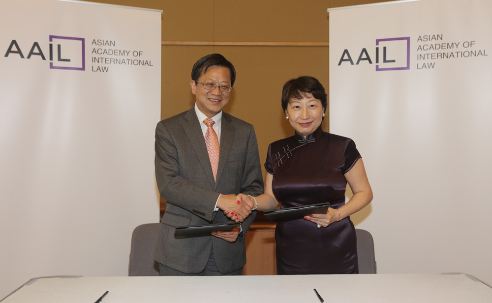 【大公報訊】記者文軒報道:外交部條約法律司司長徐宏與香港資深大律師鄭若驊昨日分別代表「中國─亞非法協國際法交流與研究項目」(CAERP)及亞洲國際法律研究院(AAIL)簽署合作諒解備忘錄。