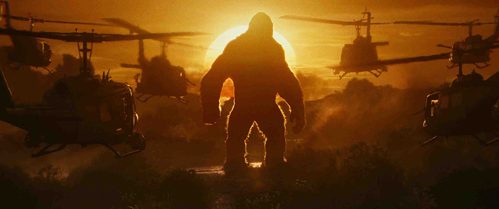 以上是美國傳奇電影的怪獸電影系列第二彈《金剛:骷髏島》的故事,和該系列的第一集《哥斯拉》一樣,把巨大怪獸的傳說插入真實歷史的時間軸內。相比起哥斯拉出現在當下時空,這部電影跳回四十多年前的越戰時期,風格也大量模仿和越戰有關的電影,如直升機飛越叢林,天上降下的炸彈,當然還有好戰的美軍。