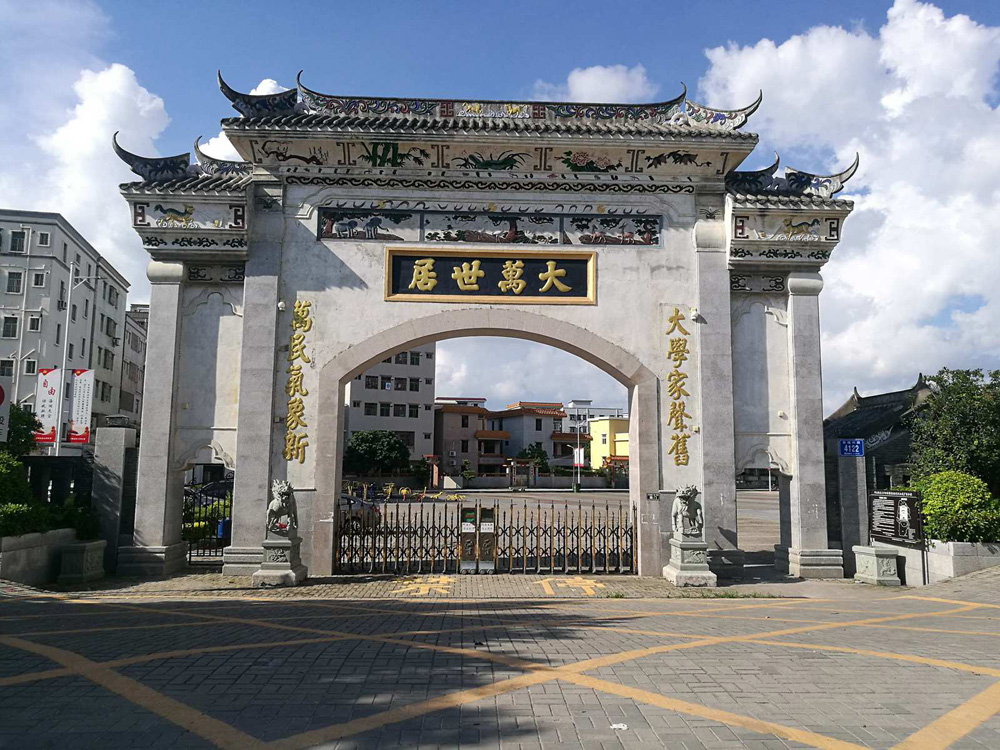 大萬世居位於深圳市坪山區,圍屋平面宛若巨大的「回」字倚在月池邊,順承「前後三坐落,左右兩護厝」的典型客家民居布局形式,是全國佔地面積最大的客家建築,二○○二年被列為省級文物保護單位。
