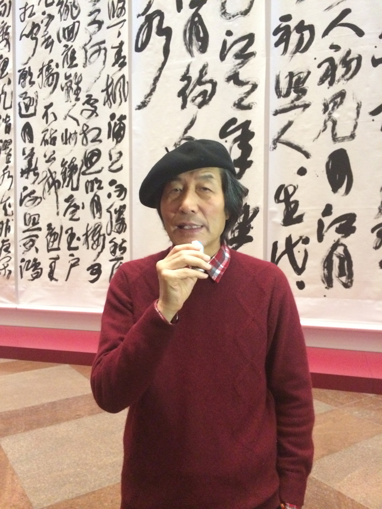 圖:王冬齡表示,以草書來書寫《春江花月夜》,春花流水,詩意之餘更見生機盎然 本報攝