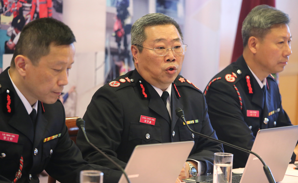圖:消防處處長陳楚鑫表示,將會更換調派後急救指引系統,提供30多種傷病急救指引/本報記者麥潤田攝