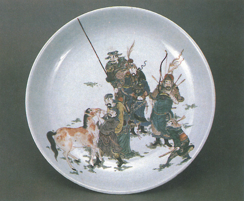 清代繪相馬圖者,多以伯樂相馬和「伯樂一顧」(市馬身價十倍)為主題。另有繪於彩瓷上者,多宗名家筆法。例如附圖,就是康熙黑五彩(以黑彩勾畫輪廓線)《相馬圖》瓷盤,風格迥異,精細有餘,卻缺韻味。