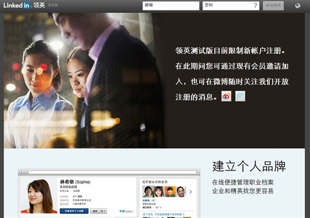領英首席執行官傑夫.韋納說,這個網站用的是絕大部分用戶都能看懂的簡體中文,並且會進行某些形式的自我審查,以便確保在中國的運營。他說:「中國有1.4億專業人士──佔全球專業人士的五分之一。我們的『純英文』網站只有400萬中國用戶」,其中絕大部分都是在華外籍人士。