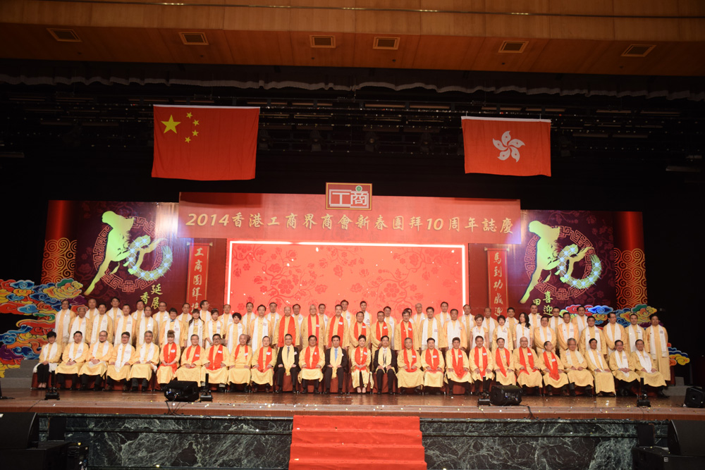圖:2014香港工商界商會新春團拜暨10周年誌慶,賓主合影 /本報記者馮玥攝