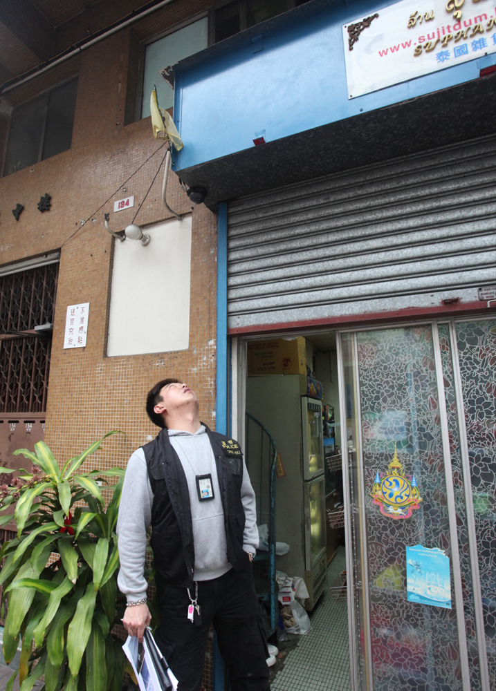 圖:警員在案發現場約一公里外的一家泰式雜貨舖,取走閉路電視錄影片段作調查