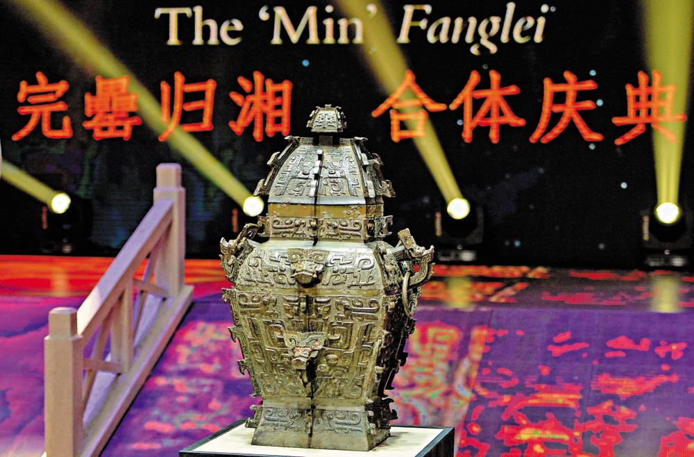 【大公報記者劉巧雄長沙二十八日電】被譽稱為「方罍之王」的國寶青銅器皿方罍的器身和器蓋28日晚在湖南長沙舉行合體儀式。