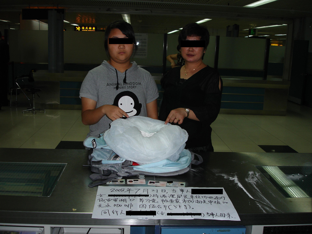 圖:一對港人母女走私毒品被海關截獲  本報攝