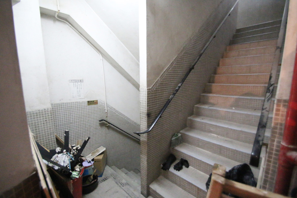 圖:大廈的走火樓梯十分狹窄,只有約4呎寬,不能應付大量人流