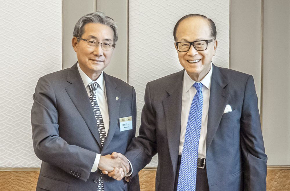 圖:梁智仁(左)感謝李嘉誠提升香港公立醫療服務